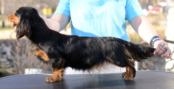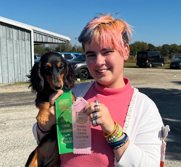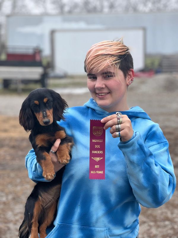 Cola is 1/2 import, champion pedigree, and bred-by us. She is from CH X Man x CH Razzle Dazzle.