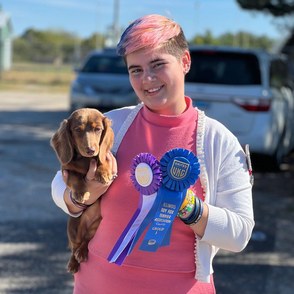 Bellamy (bred by us) took Best Female, Best Of Winners, Best of Breed, and Best In Group in UKC!