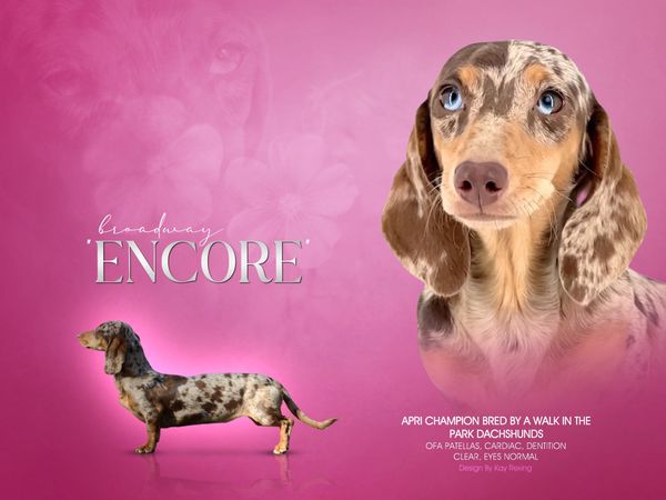 Encore was bred-by us and has 10 known relatives with OFA Health Testing and 9 relatives who have been shown or titled.