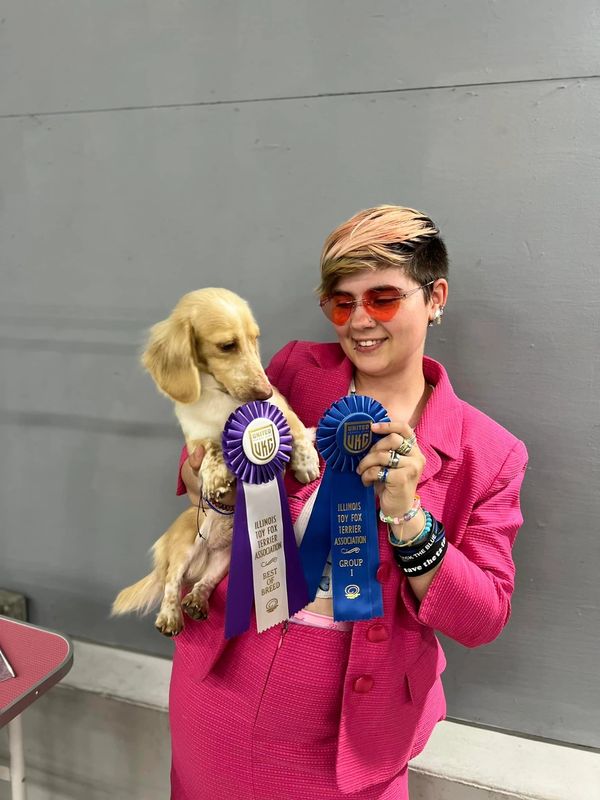 UKC champion, APRI Champion, International Champion, Number 10 Dachshund in UKC 2024, Group #3 in International Hound Group.