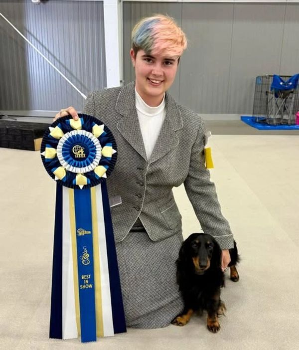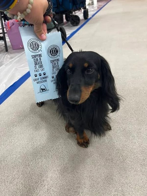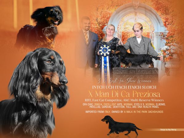 Italian Champion, Slovakian Jr Champion, Italian Jr Champion, UKC Champion, and has been shown in AKC. He also has one field trial working title and is working towards his AKC Fast Cat BCAT title.